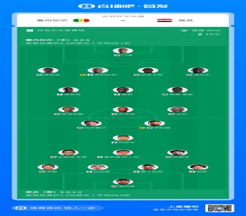 体育播报01月15日宣 北京时间1月15日1:00,非洲杯半决赛,塞内加尔vs埃及。赛前双方公布了本场比赛的首发阵容。
