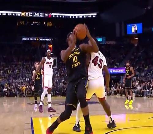 当时的情况是这样的。巴特勒空切,不过因为位置不太好,最终造成巴特勒的要球非常艰难,他必须要跳起来去拼抢这个球。然而在落地的时候,巴特勒的膝盖却扭了一下。