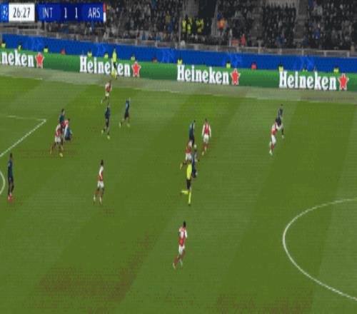 第10分钟,阿森纳在国米的30米区域打出眼花缭乱的配合,廷贝尔将球扫到中路,热苏斯插上,打破僵局。